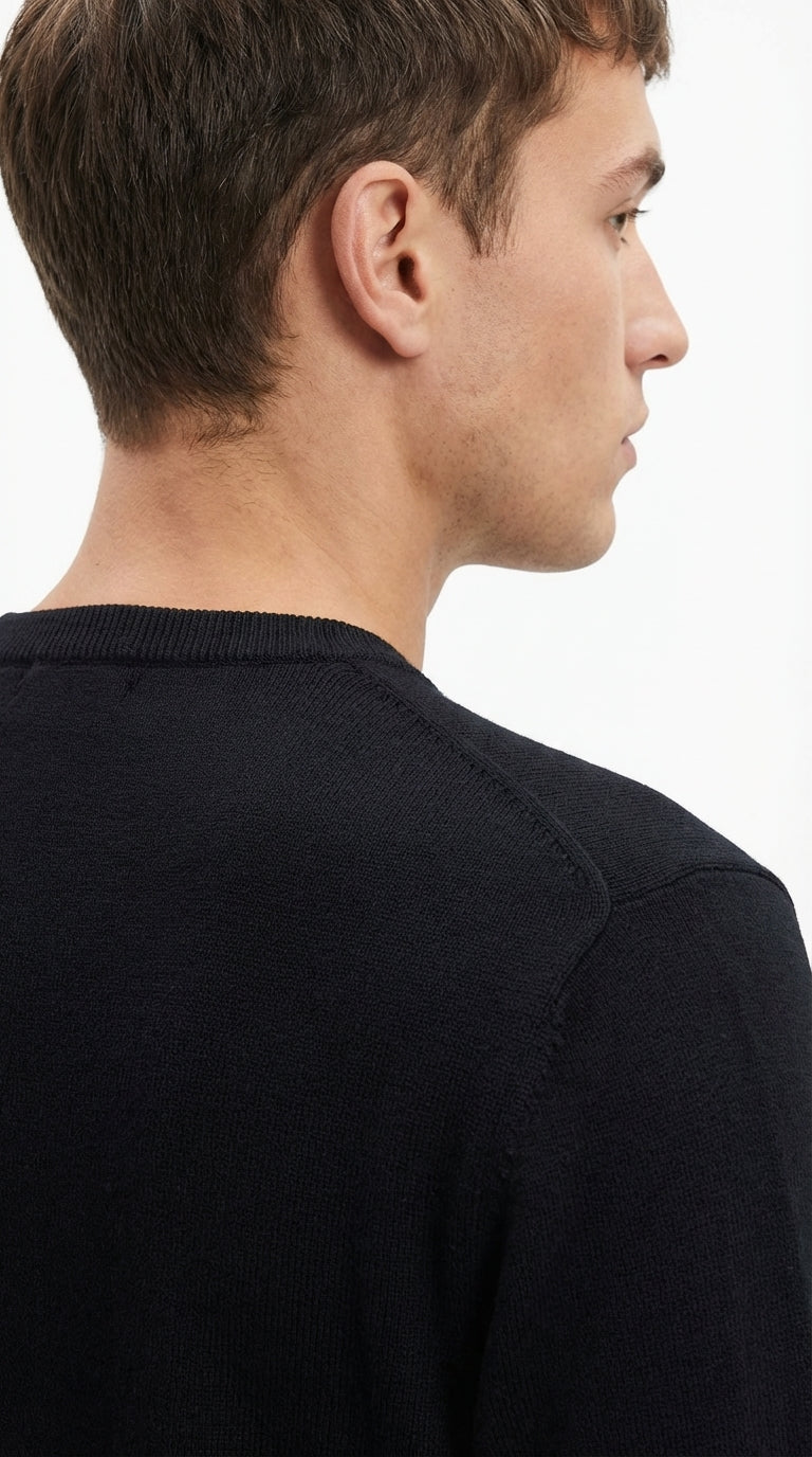 Ten lekki sweter wykonany jest ze starannie dobranej mieszanki 38% akrylu, 37% poliestru, 21% nylonu i 4% wełny , oferując miękkość w dotyku , trwałą konstrukcję i komfortową rozciągliwość . Zaprojektowany do noszenia na co dzień, dobrze układa się na ciele i jest gładki w dotyku – idealny zarówno samodzielnie, jak i pod kurtkę lub marynarkę.